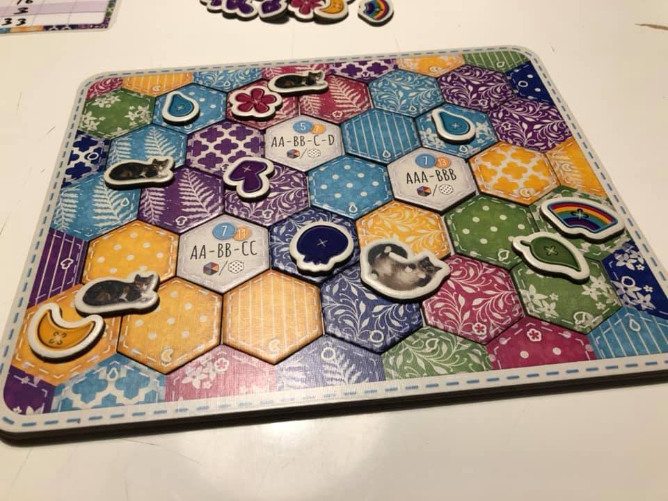 I’ve had several games that have passed through my collection that involved polynomial shapes (think Tetris-style shapes). Some great ones have been Patchwork, Indian Summer, and Cottage Garden. Isle of Cats is my current favorite. The story is a little quirky as you are pirates who are rescuing cats from an island about to be destroyed by an evil pirate Lord Vesh. You have 5 rounds to use fish to lure as many polynomial shaped cats on your boats as you can fit and as you do, you also discover treasures and learn ancient lessons. There are also two ways you can play the game. A family mode which simplifies the rules so you can jump right in and play, or a card drafting standard mode which adds just a little more decision making as each round involves a card drafting component to determine what cats and/or treasures you can haul onto your ship. The components are fantastic and if you happen to have a cat in your family, the game also comes with a spot to have your cat rest in the box lid as you play (I’m not kidding, there’s a labeled spot for your cat). If you love cats and love Tetris style puzzles, this is the game for you!