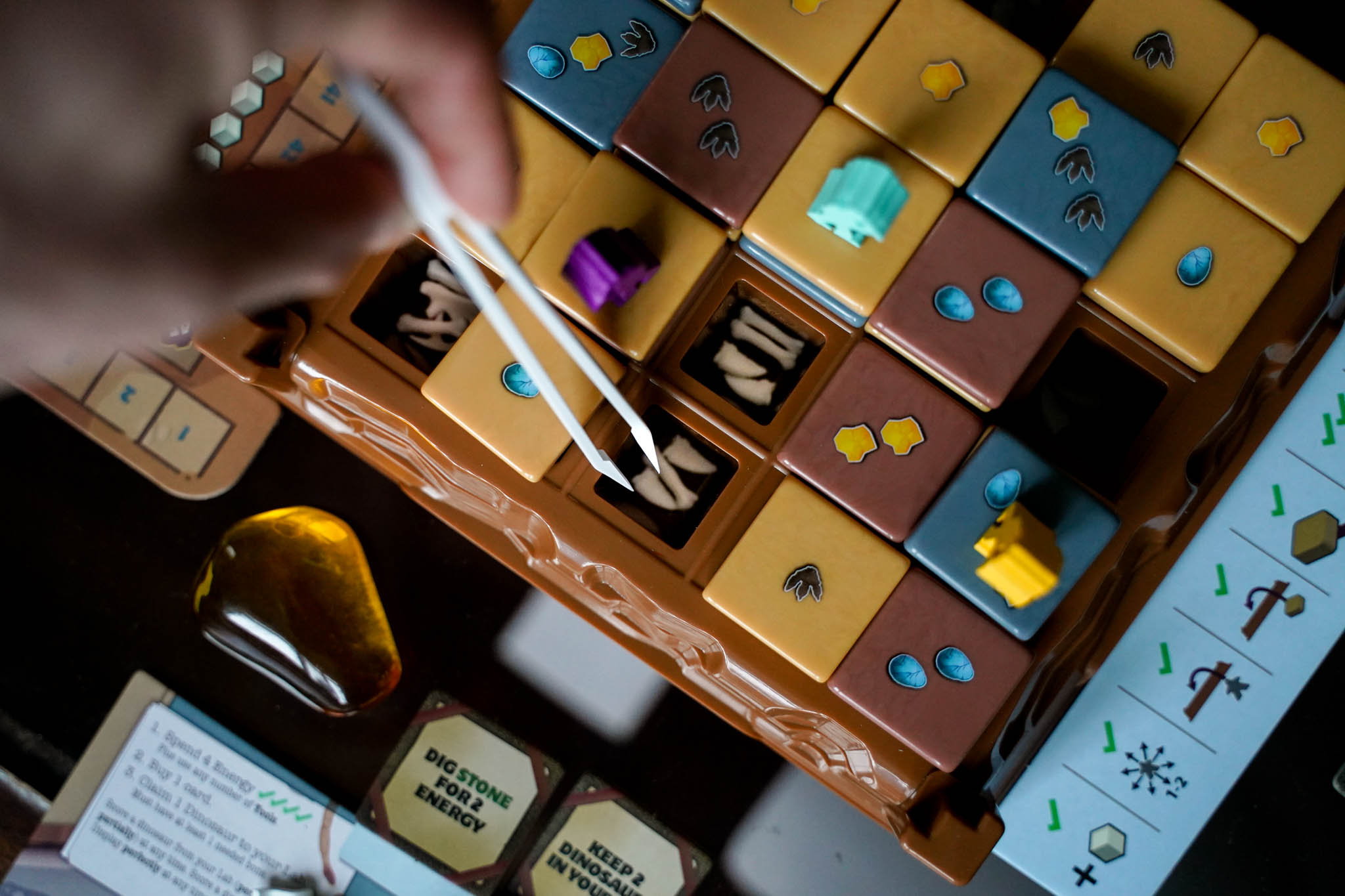 Fossilis is the most unique game to come out this year and it is amazing. Players compete to dig up fossils at a dig site. It has an ingenious dig mechanism where players push sand, clay and stone tiles to acquire trace fossils and uncover fossils. The trace fossils can be traded in to gain tools that give them special abilities or resources in order to extract the fossilized remains of dinosaurs to put their exhibits in museums to score points. Pushing the sand, clay and stone layers around to uncover the fossils is so much fun. The plaster needed to collect the fossils makes the game really tight forcing you into some tough decisions to either go after that dinosaur skull for big points or delay the end of the game to score one more exhibit. It’s a fun game and I highly recommend it especially for families.